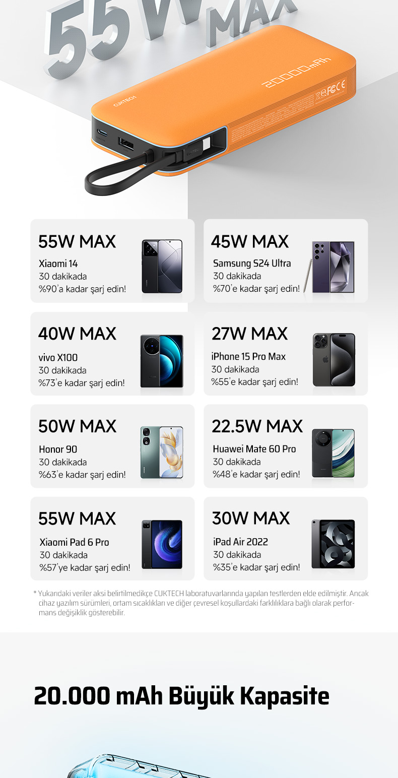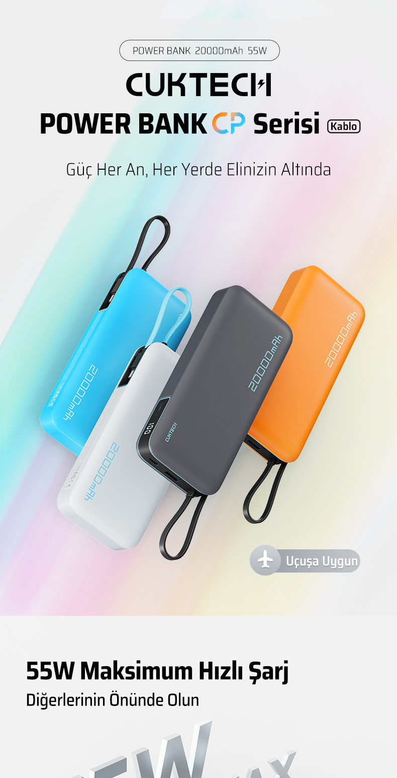 CUKTECH 25 Powerbank 20000 mAh | 55 W PD3.0 Hızlı Şarj | 2 Port (Type-C + USB-A)
