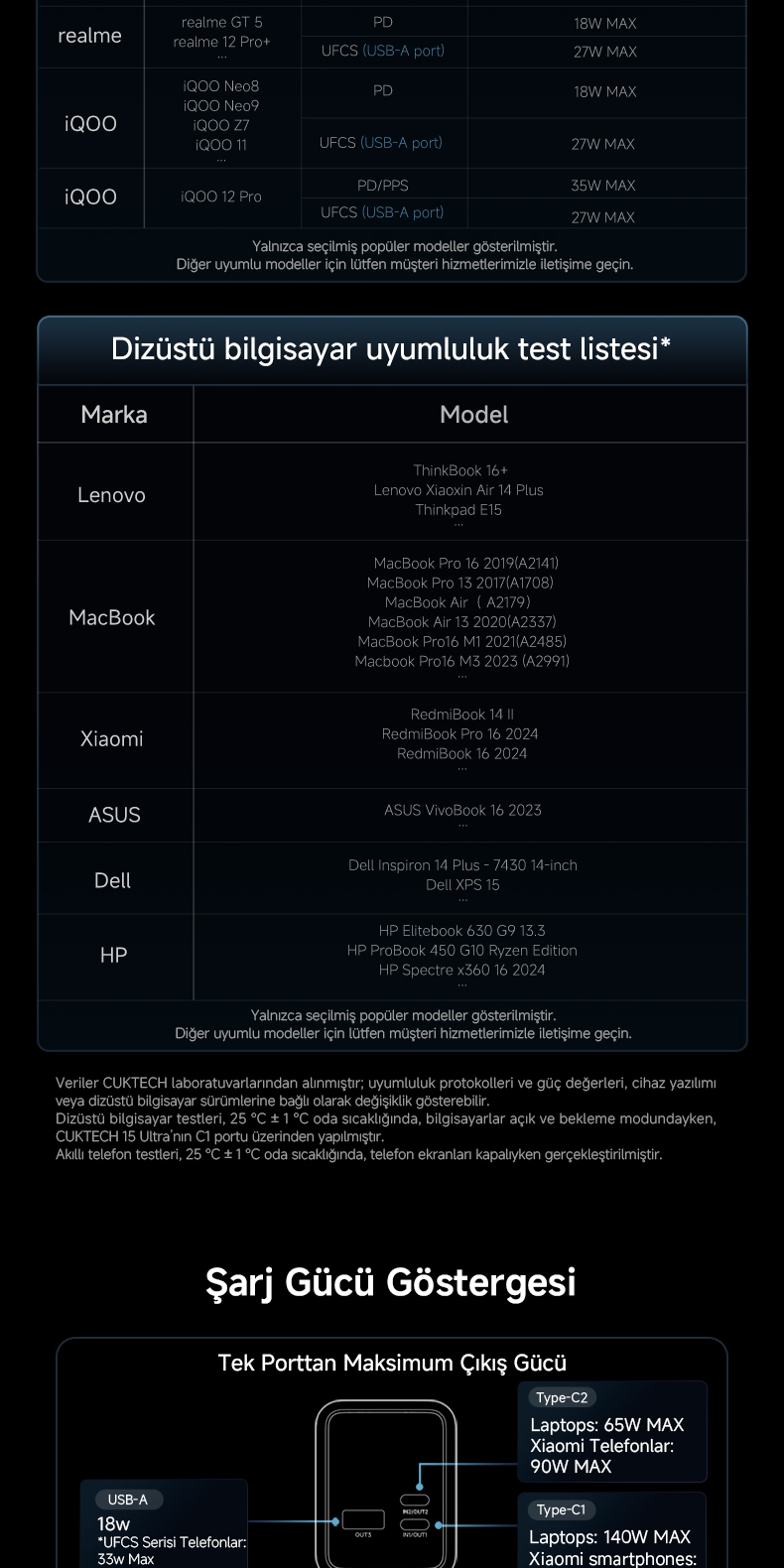 CUKTECH 15 Ultra, PD 3.1 standardıyla donatılmıştır ve tek portta 140 W, toplamda 210 W’a kadar çıkış gücü sunar.